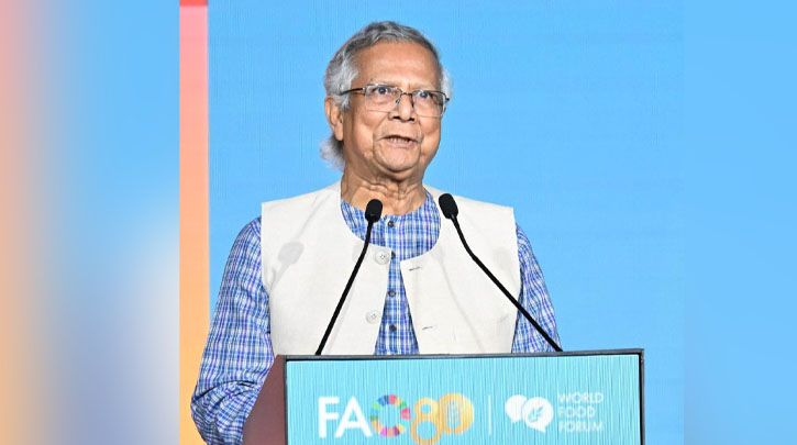সোমবার (১৩ অক্টোবর) ইতালির রোমে জাতিসংঘের খাদ্য ও কৃষি সংস্থা (এফএও) সদর দফতরে আয়োজিত ‘বিশ্ব খাদ্য ফোরাম (WFF) ২০২৫’-এর উদ্বোধনী অনুষ্ঠানে প্রধান বক্তা হিসেবে এসব কথা বলেন তিনি।