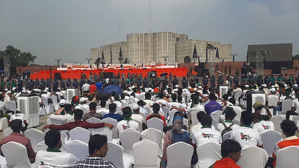 সনদ স্বাক্ষরের মঞ্চের সামনে অবস্থান জুলাই যোদ্ধাদের