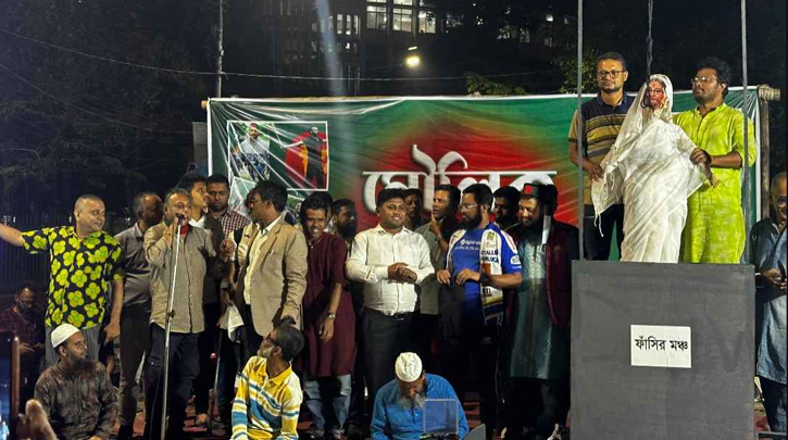 শাহবাগে শেখ হাসিনার প্রতীকী ফাঁসি