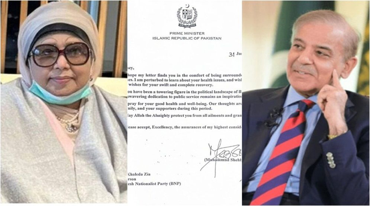 হাসপাতালে চিকিৎসাধীন বিএনপি চেয়ারপারসন ও সাবেক প্রধানমন্ত্রী খালেদা জিয়ার দ্রুত সুস্থতা কামনা করে চিঠি পাঠিয়েছেন পাকিস্তানের প্রধানমন্ত্রী শাহবাজ শরিফ।