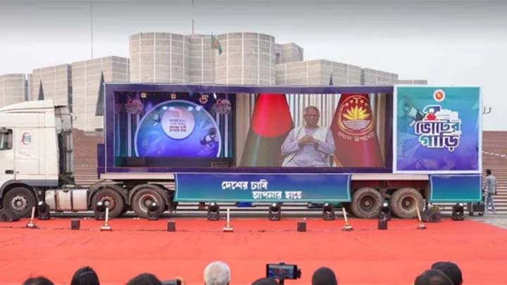 তিনি বলেন, এই লক্ষ্যকে সামনে রেখে যাত্রা শুরু করেছে ১০টি ভোটের গাড়ি—সুপার ক্যারাভান। এসব গাড়ি দেশের ৬৪টি জেলা ও ৩০০টি উপজেলায় ঘুরে বেড়াবে। তারা মানুষের দুয়ারে দুয়ারে গিয়ে নির্বাচন ও গণভোট সম্পর্কে তথ্য পৌঁছে দেবে, ভোটাধিকার সম্পর্কে সচেতনতা তৈরি করবে এবং গণতন্ত্রের বার্তা ছড়িয়ে দেবে।