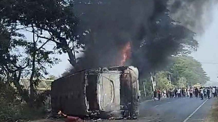 পুলিশ বলছে, ত্রিমুখী সংঘর্ষেই অগ্নিকাণ্ডের সূত্রপাত। সংঘর্ষে যাত্রীবাহী বাসটিতে আগুন লেগে যায়। এটা মোটরসাইকেলের জ্বালানির ট্যাংকার থেকে হতে পারে। খবর পেয়ে ফায়ার সার্ভিস এসে আগুন নিয়ন্ত্রণ করে।